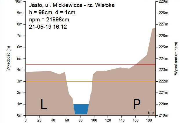 Czerwona linia: poziom powżej koryta rzeki.